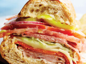 Stacked high with three meats, provolone, and bright pickled banana peppers, these cheesy hot Italian sandwiches are the perfect handheld lunch.