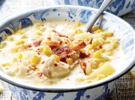 This creamy summer chowder is chock-full of corn, white fish, potatoes, and bacon.