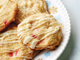 These soft, chewy cookies are filled with white chocolate chips and crushed candy canes.