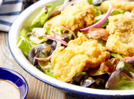 Fried Oyster Salad With Lemon Balsamic Dressing