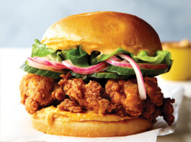 The key to this crispy, juicy chicken sandwich is Texas Pete, which is mixed into the breading — and into a Duke’s mayonnaise spread.