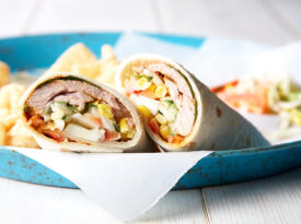 Wrap up grilled pork tenderloin and a slightly spicy slaw for a delicious handheld meal.