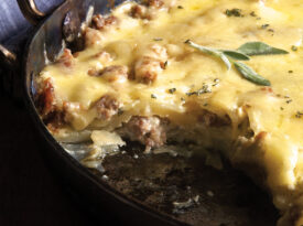 Cold-weather comfort can be found in layers of creamy, cheesy potatoes and sausage.