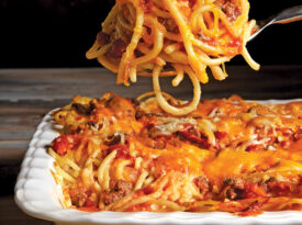 A different kind of winter warmer: Our baked spaghetti combines pasta, cheese, and tomato sauce into one melty medley.