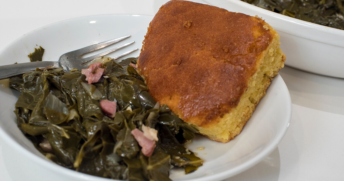 The pros know that the best way to serve this classic side is with a hearty piece of cornbread.