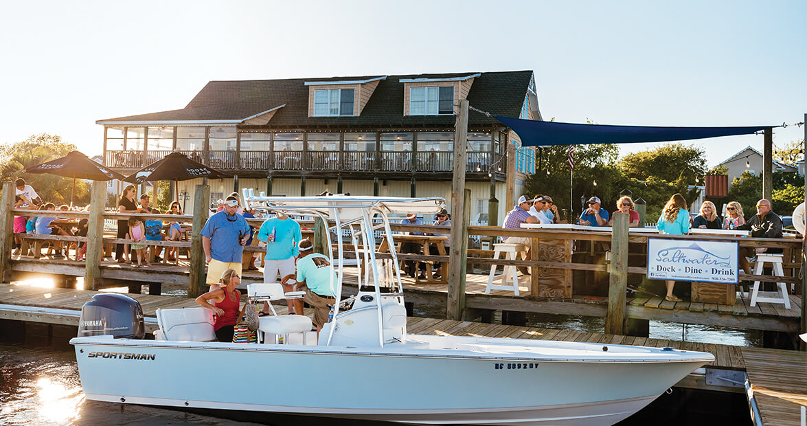 Whether you arrive by car or by boat, this laid-back restaurant in downtown Swansboro will fill your plate with seafood, and your heart with a love of the water.