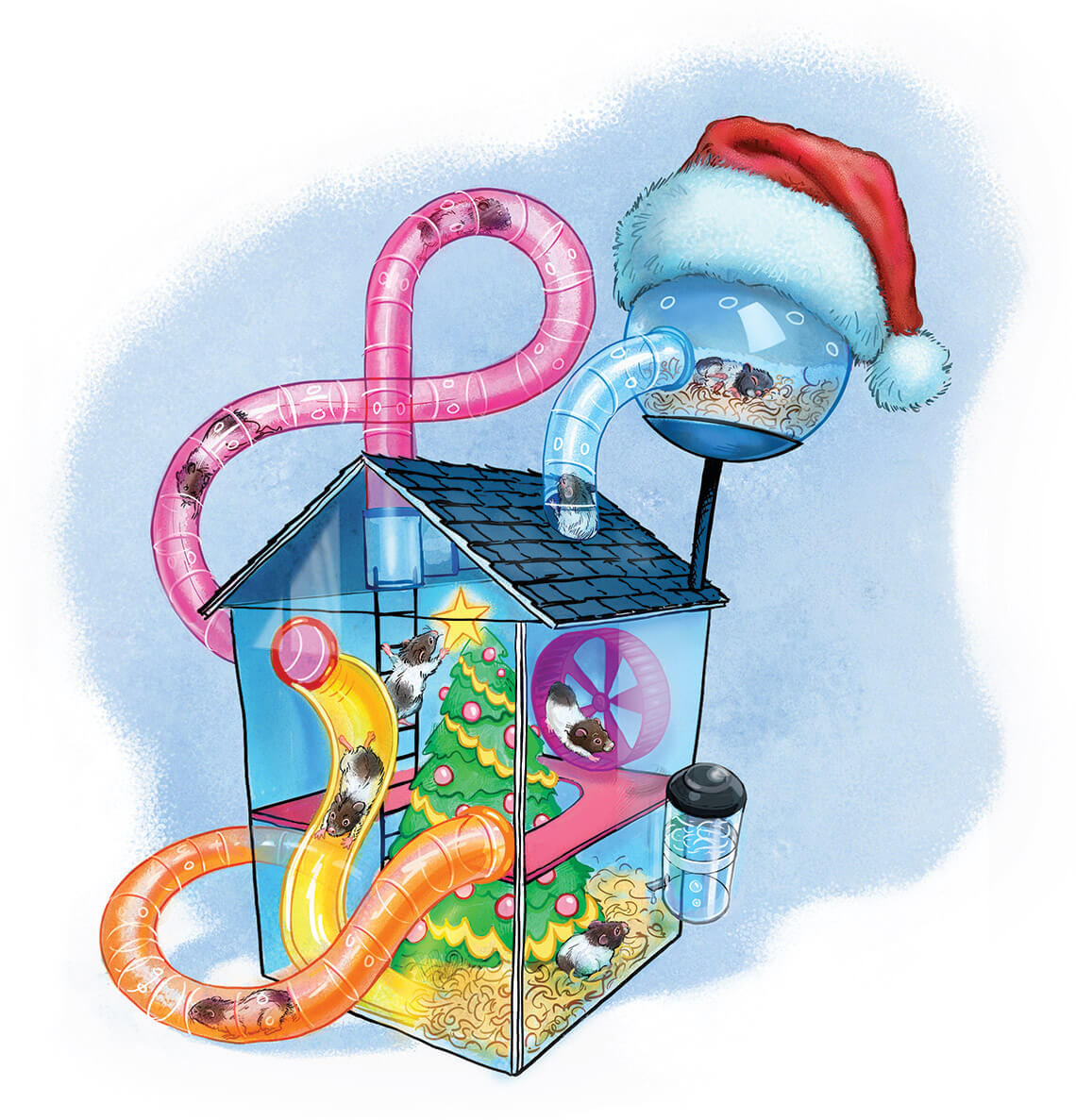 I tucked Speedy back into his temporary cardboard box condo — secured with duct tape this time — and brought him upstairs. I still had a solid hour of assembling the multilevel interactive playhouse with enrichment upgrades while Julie stuffed the stockings and carefully arranged presents under the tree.