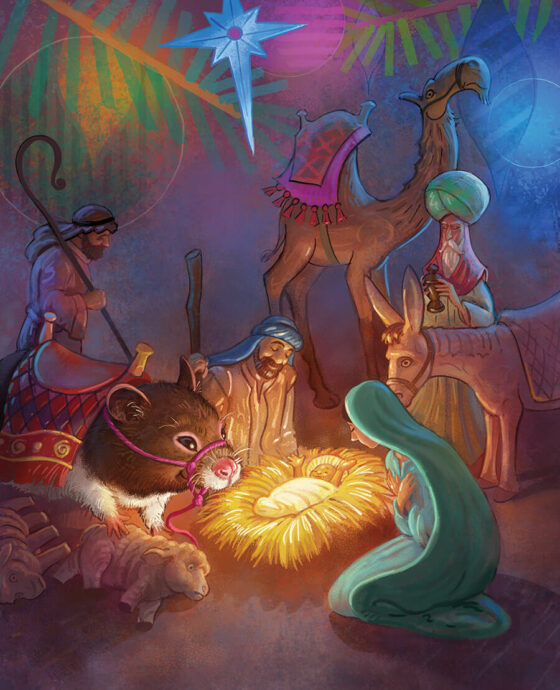 After dinner and the Christmas Eve church service, we were back home, tired and with anxious kids and a couple hours of challenging toy construction ahead of us. We put the kids to bed, and I headed toward the basement, where we’d been storing the hamster and an over-the-top and unassembled “habitat” that would have rivaled some of the rides at the State Fair.