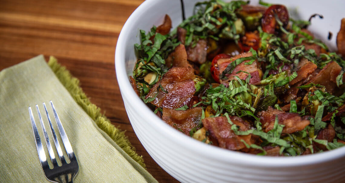 Lay bacon in an even layer on a roasting rack set over a sheet tray and bake for 8 to 10 minutes, until crispy. Remove and cool for 5 minutes before cutting into 1-inch pieces. Set aside.