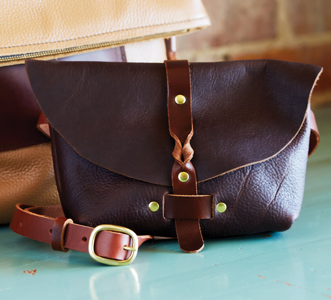 Milestone Bag Co.’s Siler City storefront sells gorgeous leather bags like The Emily Foldover and Shake Your Fanny Pack. photograph by Stacey Van Berkel