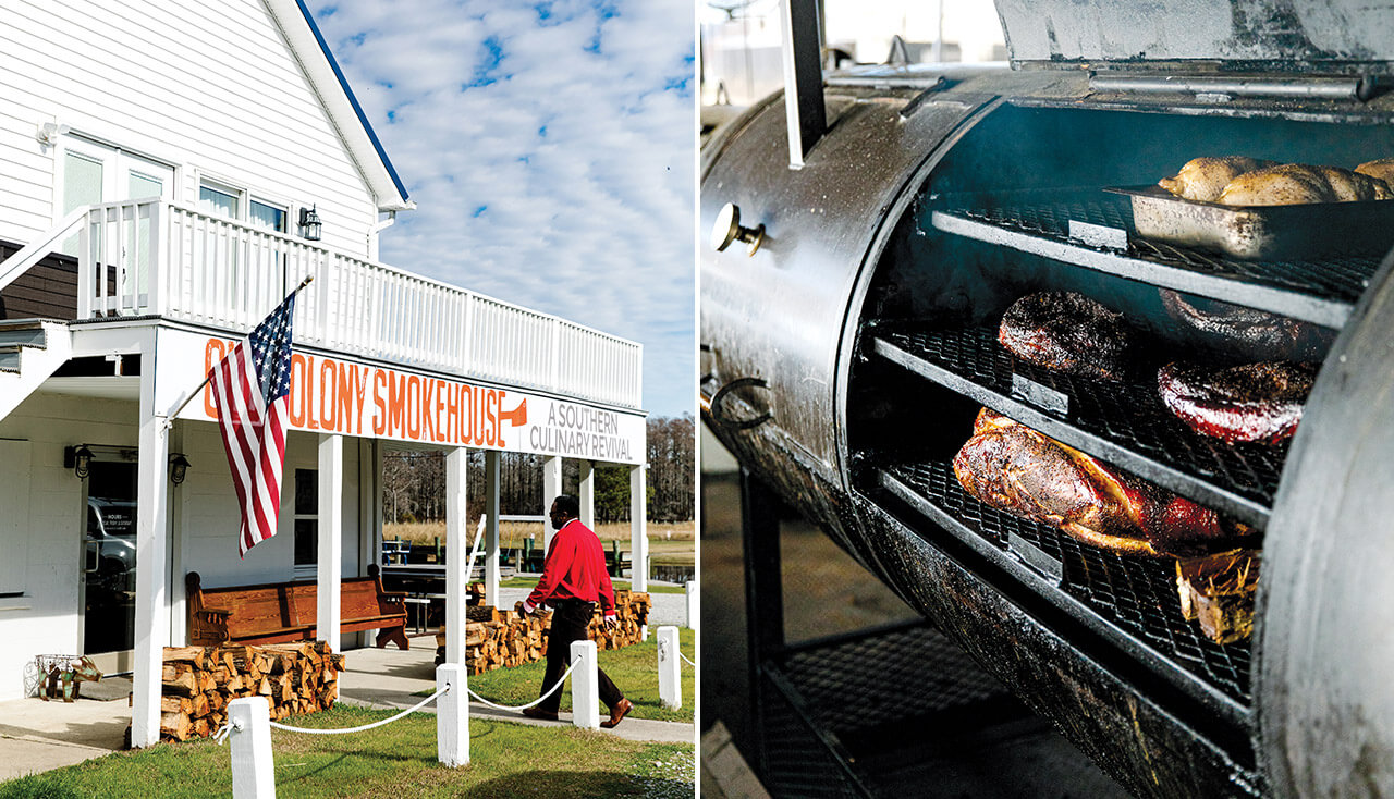 On the day that Adam Hughes was born, his family was killing hogs. “My mom was in the hospital with me, and we were there completely by ourselves because the hog killing wasn’t finished,” says Hughes, who opened his barbecue restaurant, Old Colony Smokehouse, in Edenton in 2019. His grandfather raised crops and hogs in Bertie County, and by the late 1980s, his grandmother’s pork sausages were so regionally popular that the family was selling hundreds to thousands of pounds of it each week. The school bus used to drop Hughes off in front of his grandparents’ store on their property, and, over time, he learned the ins and outs of the operation.