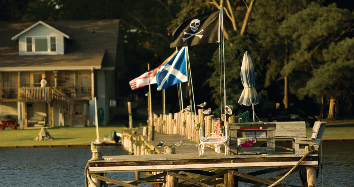 There’s little to attract young families to Bath, little in the way of industry or jobs. Down the street is Blackbeard’s Slice and Ice, one of only two restaurants. Just up the road is a general store and market. The hospitality industry consists of a visitors center, one motel, and one bed and breakfast. Most residents, frankly, like it this way. They’re either long-time family property owners, like Taylor, or retirees who’ve made enough money elsewhere to be able to buy a view of sunsets over the water for the rest of their lives. As historically important as Bath is, it is a mostly forgotten corner, a colorful and enchanting town along the inner banks of North Carolina, a jewel of a spot for anybody who owns a piece of its quiet waterfront.