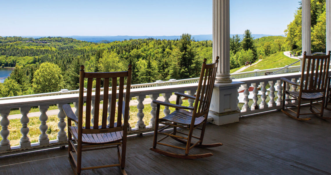 For many years, rocking chairs lined the eight-foot-wide porch of the historic 1901 Cone Manor, says Tina White, a supervisory ranger at Moses Cone Memorial Park. About 10 years ago, the rockers started to fall apart, and after discovering that the Cone family actually used wicker chairs on the porch, the National Park Service replaced the old rockers with historically accurate — stationary — chairs. But the community decided there’s nothing quite like a rocking chair, so a local resident donated a few new ones to the manor. Now, most years from April through November, visitors can view Bass Lake and a valley of white pine, sugar maple, and apple trees from the comfort of wicker and rocking chairs.