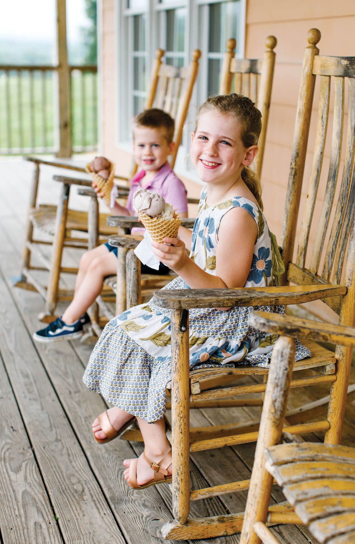 Maple View Ice Cream is known for its custom sundaes, but the homemade waffle cones bring smiles to Charlie and Sloan Jalazo’s faces. photograph by Anagram Photo