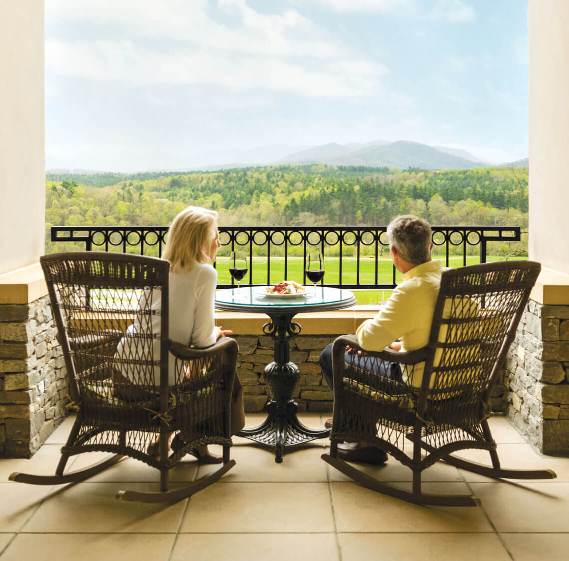 The Rocking Chair Terrace at the Inn on Biltmore Estate. photograph by Courtesy of The Biltmore Company