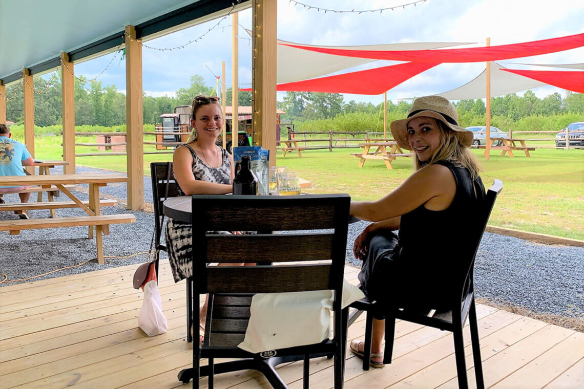 Sip a cold glass of craft cider on the front porch of James Creek Cider House in Cameron. Photography courtesy of Visit Pinehurst, Southern Pines, Aberdeen