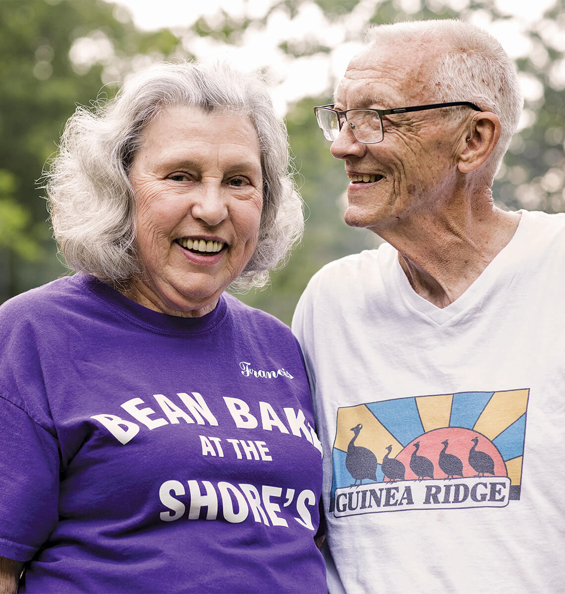 Lloyd and Frances Shore, who began hosting their unlikely bean party nearly a decade ago, meet at the end of the line. “People did a good job on the beans,” Lloyd says, scraping the bottom of a dish. Frances nods. She’s wearing a bold purple T-shirt with “Bean Bake at the Shore’s” spelled across the front in white lettering.