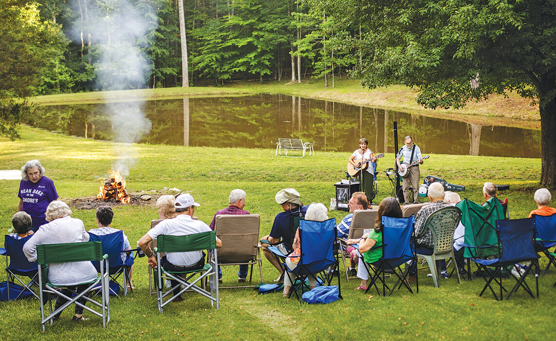 Bean-loving friends, family, and neighbors join hosts Frances and Lloyd Shore on Guinea Ridge’s 37 acres for a bonfire and music by India Cain and Keith Allen. photograph by Alex Boerner