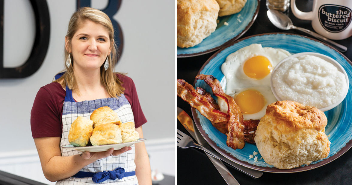 t The Buttered Biscuit, the bigger the biscuit, the closer to heaven. “We figured if we were going to have a place called The Buttered Biscuit, the biscuits had better be good and memorable,” says Olivia Vargo, the general manager of the Waynesville restaurant. “So we decided to make them large.”