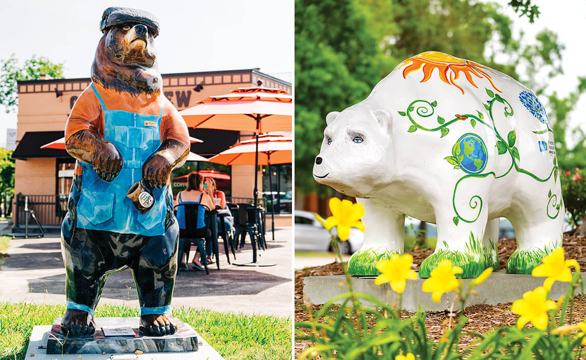 At Crema Brew in New Bern, meet Bearista Bear, who’s dressed just like the real baristas serving coffee inside, or spend an afternoon at Union Point Park with Greenzly, the nature-loving bear (right). photograph by Matt Ray Photography, VisitNC.com