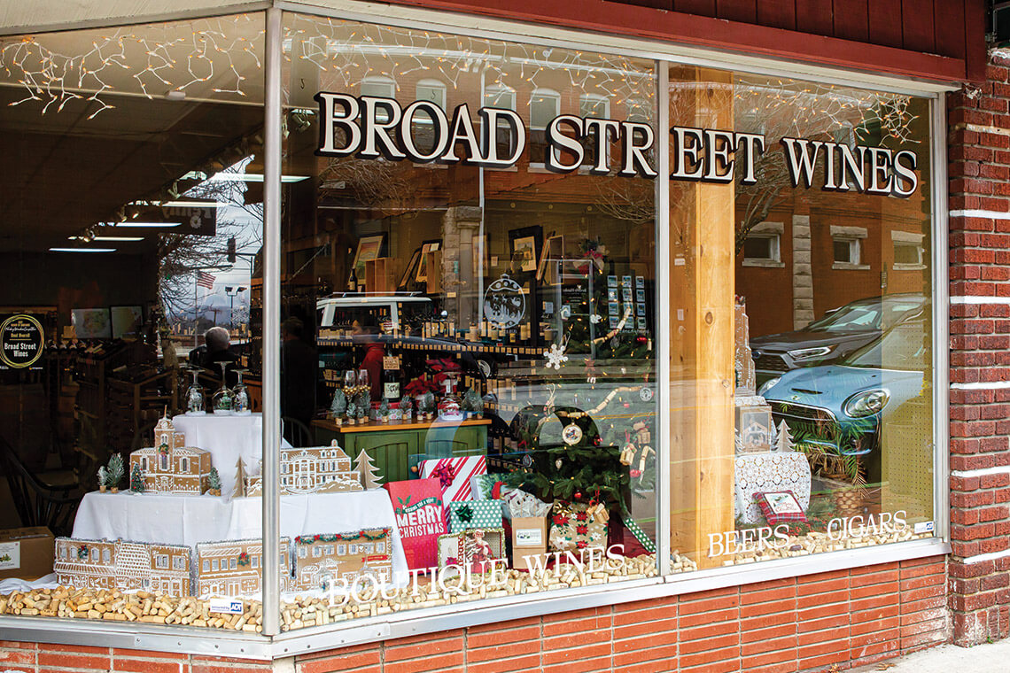 With its nod to the downtown Brevard of yesteryear, Broad Street Wines won 2021’s window decorating contest and even managed to incorporate wine glasses into the scenes. photograph by Tim Robison