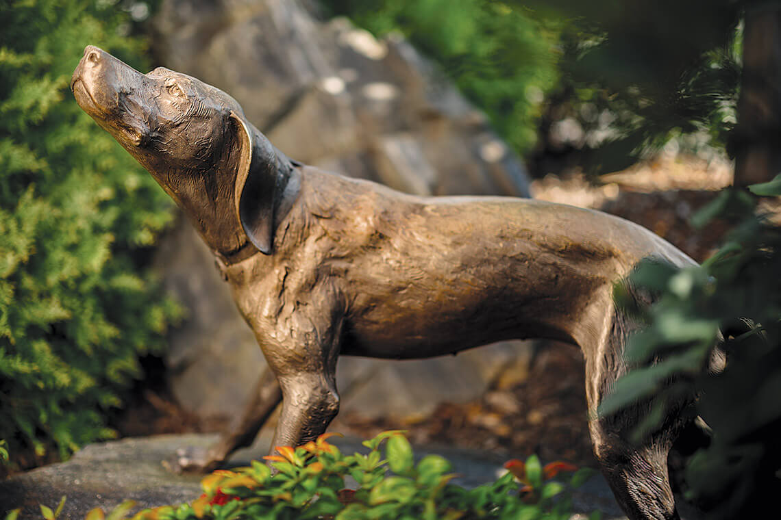 In 1999, Waynesville officials began a project to highlight the Plott hound’s importance to the town’s historic Hazelwood district. In 2017, this statue, sculpted by Todd Frahm, was unveiled in a local mini-park. photograph by Jerry Wolford & Scott Muthersbaugh