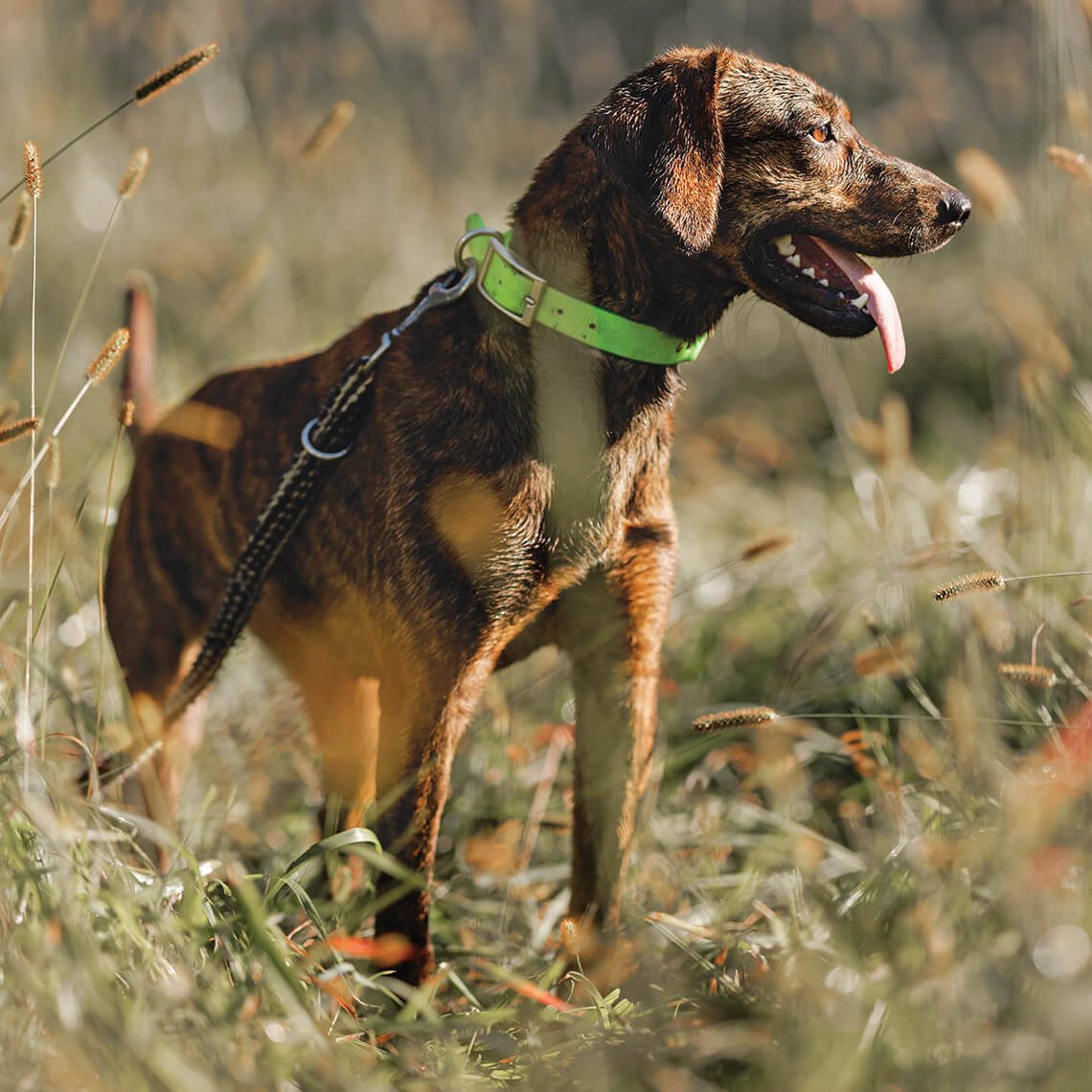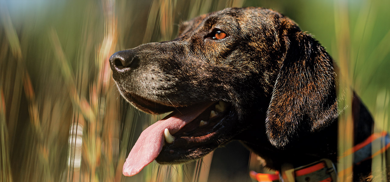 It’s important to leash a Plott hound during walks. Because of its powerful olfactory system, the dogs become intensely curious about everything they see and smell. photograph by Jerry Wolford & Scott Muthersbaugh