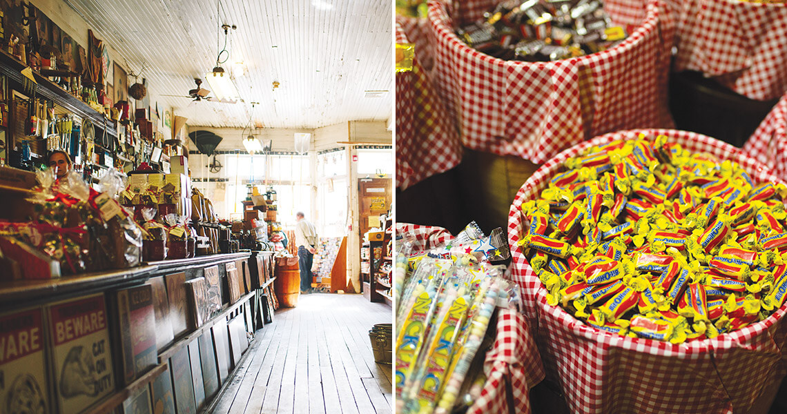 Barrels of nostalgic candies await inside the original Mast General Store in Valle Crucis, which opened as Taylor & Moore General Store in this same building in 1883. photograph by Revival Creatives