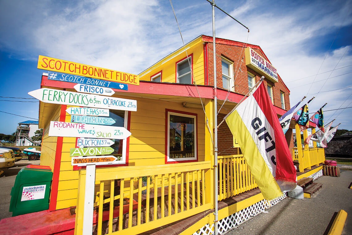Named for our state shell, Scotch Bonnet Fudge & Gifts is a colorful landmark on Hatteras Island … <br><span class="photographer">photograph by Chris Hannant</span>