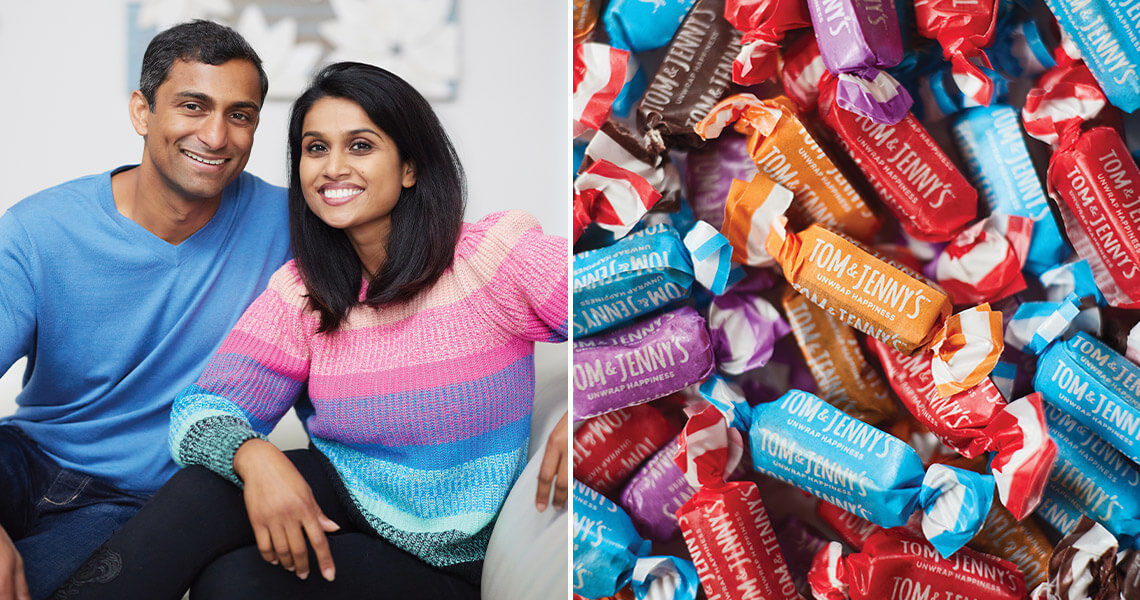 In a blind taste test, Tom Thekkekandam and Jenny Citineni’s sugar-free caramels — available in classic, chocolate, ginger, spiced rum, and coffee flavors — proved indistinguishable from sugared versions. photograph by Alex Boerner