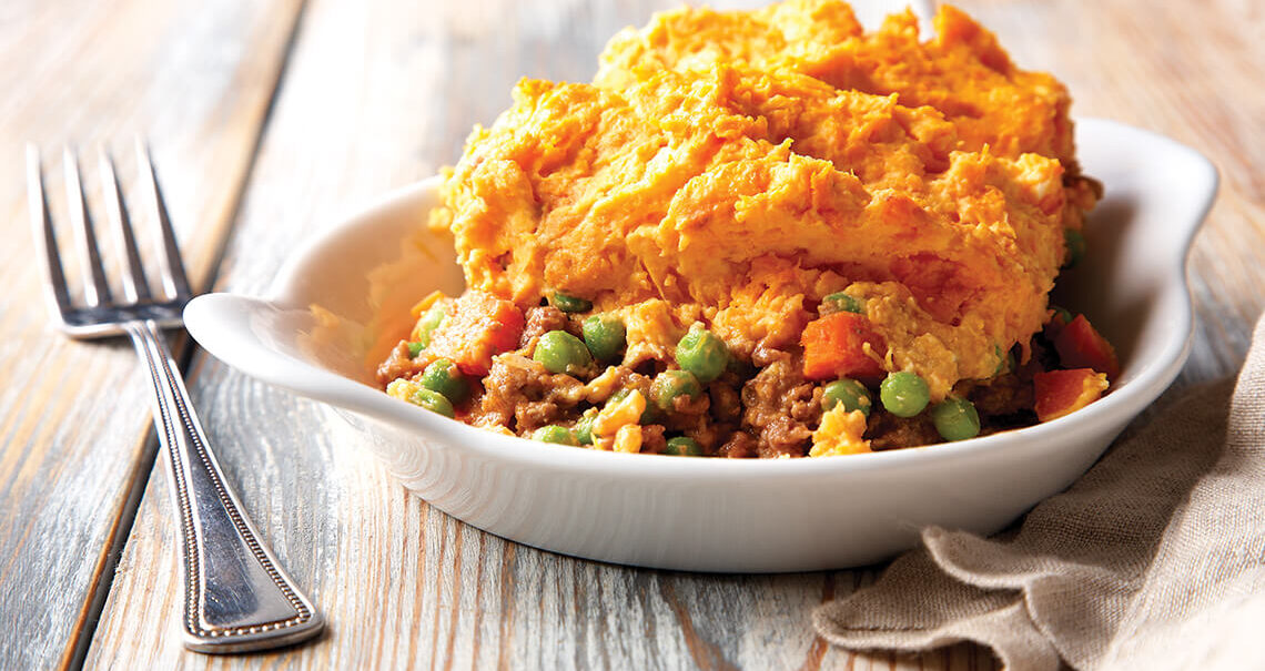Spread the ground beef mixture in an even layer on the bottom of a 2-quart casserole dish. Next, layer the carrots. Top with the mashed potato mixture. Bake for 30 minutes or until lightly browned.