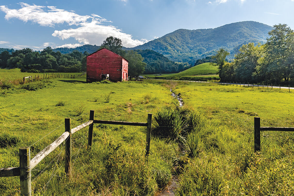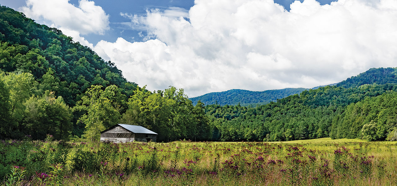 “It’s a magical place,” Wayne Caldwell says of this stretch of land in Haywood County. He’s the author of the novel Cataloochee, but also a descendant who often arrives in August to sing and hear the bell with the other reunion-goers. It’s easy to see the magic. Everything is awash in and enveloped by green, as if there were no other colors in the palette. If you climb a ridgeline to find a good view, the mountains beyond are blurred and hazy as if in a dream. Behind every sound is the call of a stream.