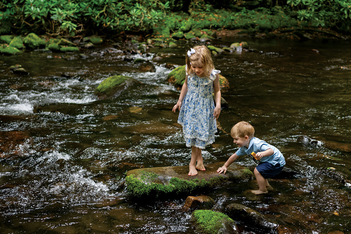 Visiting families set off to explore Cataloochee Creek …<br><span class="photographer">photograph by Charles Harris</span>