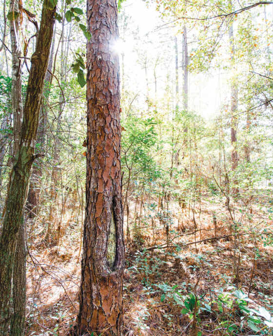 Cat-face pines are a touchstone of a forgotten era, a time when pinewoods across the Coastal Plain were practically an open-air factory. Those old trees produced sticky gum, which was harvested by slashing the trunks and collecting the sap. From the late 1700s to the early 1900s, those old-growth cathedrals of longleaf pines produced a trio of products no less critical to global commerce than gasoline is today: Tar waterproofed the lines and ropes on sailing ships.