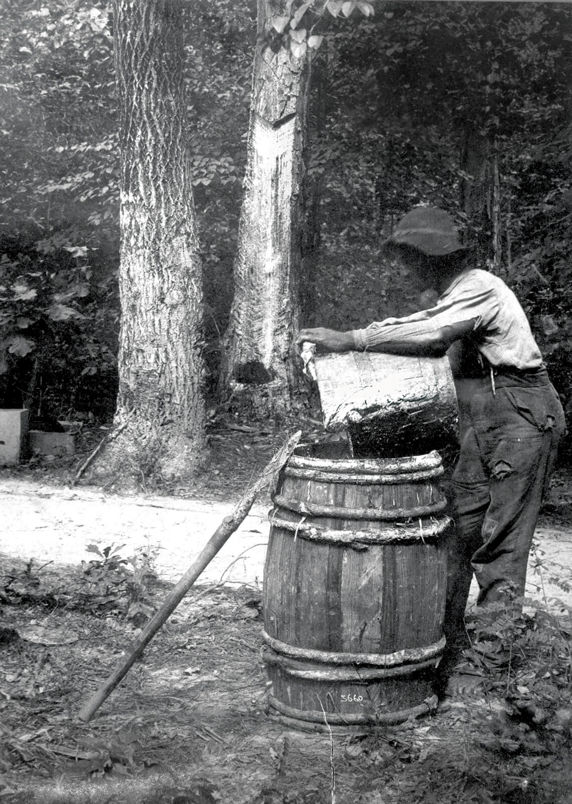 The naval stores industry — dirty and taxing for workers like this one in Sampson County in 1890 — was hard on trees and people. photograph by State Archives of North Carolina