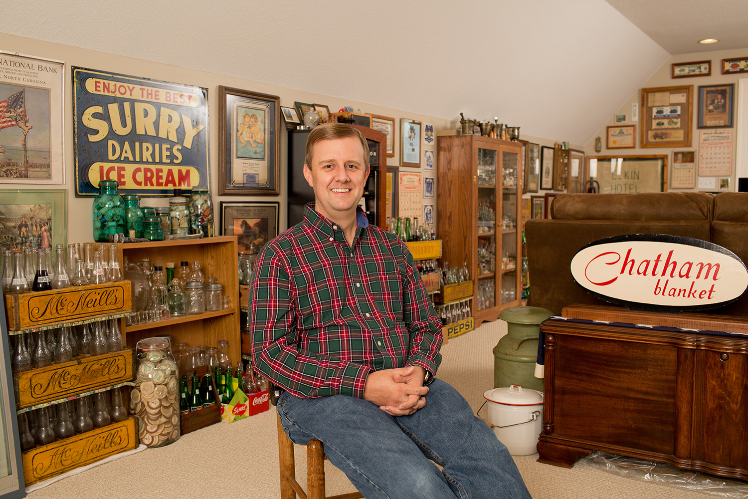 The wool feels so soft. So cushiony and cuddly and snuggly. A winter-weary person could cocoon himself on Couch’s couch right now and tell January to go stuff it. But the blanket shall remain unused and unblemished here in what the pharmacist calls his “man cave.” (Museum is more like it.) Couch is home on an extended lunch break from Elk Pharmacy to show off the literal fabric of his community. Around Elkin, he’s known not just for filling prescriptions, but also for writing the book on Elkin’s history. And the history of this Yadkin Valley town is wrapped in the blankets of the Chatham Manufacturing Company, one of North Carolina’s earliest textile businesses.
