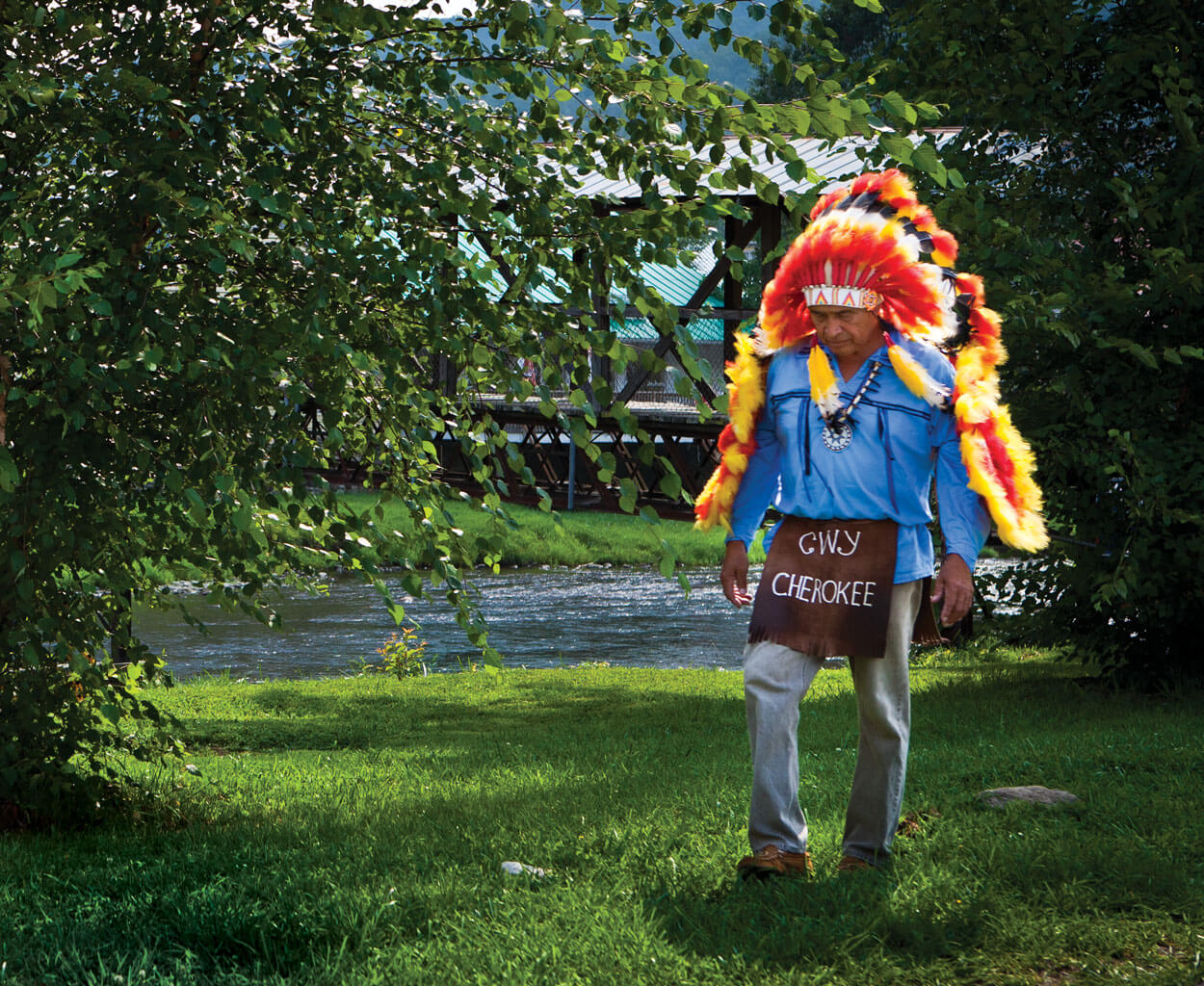 Then you meet Ernest, the grown man in the costume. You find out he’s been working this same spot on U.S. Highway 441 near the entrance of the Great Smoky Mountains National Park for more than 40 years. You learn that he comes from a traditional Cherokee family, has a hay farm with a small herd of cattle on the outskirts of town, is a stone mason in the winter, and has a well-known sister who is leading the tribe’s cultural revival. You learn he’s as close to the real Cherokee as any person in these hills.