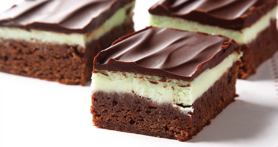 Make the frosting: In a small saucepan, melt chocolate chips, butter, and cream over low heat, stirring constantly. Remove from heat; cool 10 minutes. Remove brownies from fridge and pour frosting over filling, spreading evenly into corners. Refrigerate for 1 hour or until chocolate is set. Cut into bars. Store in refrigerator.