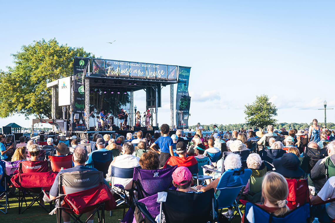 Bring a lawn chair or picnic blanket to Union Point Park for the bi-weekly summer concert series. Photography courtesy of Visit New Bern