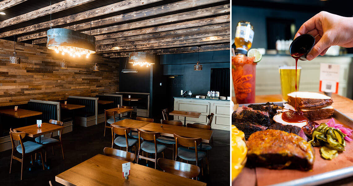 Regional barbecue loyalties fall aside at Harry’s BBQ, where you can order platters of St. Louis-style ribs, pulled pork, and hot link sandwiches for the table. Photography courtesy of Harry's BBQ