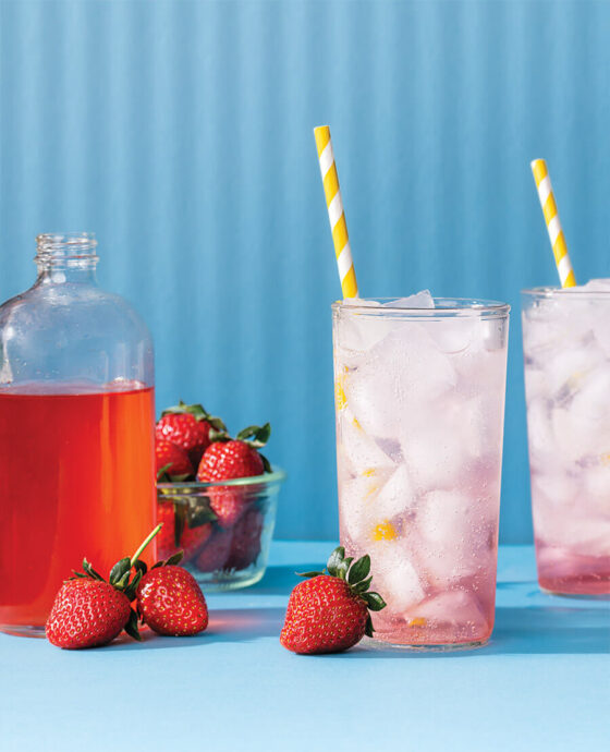 There are cooked shrub syrups, but this cold-press method is quick and easy. It also protects the pure, bright fruit flavor. Make sure the fruit is dead-ripe. You’ll discover your preferred ratio of shrub to water as you experiment with them, but 1 part shrub to 3 parts seltzer is a good starting point.