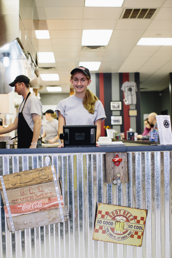 Place your order with Sarah Shope. Then, while her father, Corbette Shope, cooks your meal, use the mounted bottle opener at the counter to pop open a soda. photograph by Geoff Wood