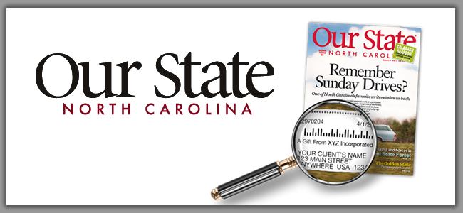 Our State is pleased to offer a discounted corporate rate of $27.95 ($5 off) for each one-year gift subscription. If you would like to take advantage of this offer, contact Paul Lineberry at (800) 948-1409.