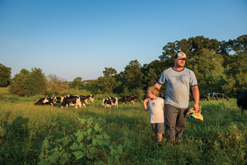 Sam Dobson’s family has had this farm since the late 1700s, and now, Sam is teaching his 6-year-old son, Chase, the ways of the land. Dobson Farm is the seventh dairy farm in the state to be certified organic, and for Sam, that means a return to one of the oldest methods: all grazing. Here, Sam and his son take the cows to a new patch of grass after milking — their 100-head Holstein herd eats 10 meals a day.