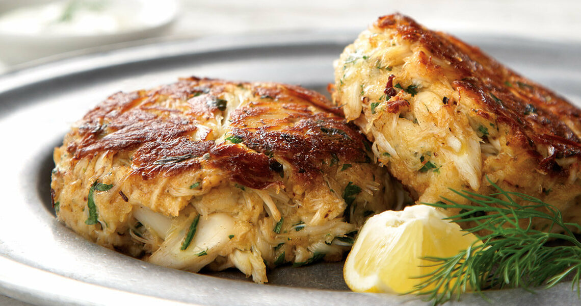 Heat olive oil and butter in a skillet over medium-high heat. Add crab cakes and cook 3 to 4 minutes per side, until browned. Serve with lemon wedges and dijon-dill sauce.