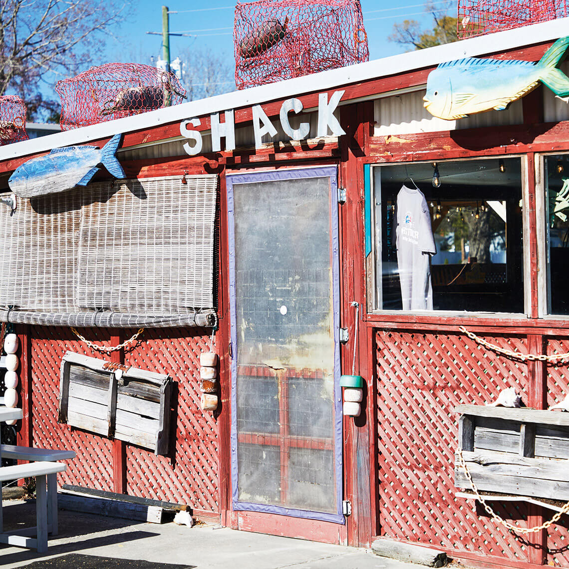 Ask the locals in Washington to recommend a seafood restaurant, and they’re likely to point to an unassuming spot about a mile inland. With crab pots perched on the roof and oyster shells for mulch, Washington Crab looks like it was practically plucked from the surf. Its cinder-block frame is draped with fishing nets and buoys, with pier pilings and a weathered wooden pelican out front. While there’s no water in sight, this rustic restaurant brings something different to the table — seafood that is 100 percent locally harvested and handled, filleted and cleaned at Washington Crab’s processing facility about two blocks from the Pamlico River.