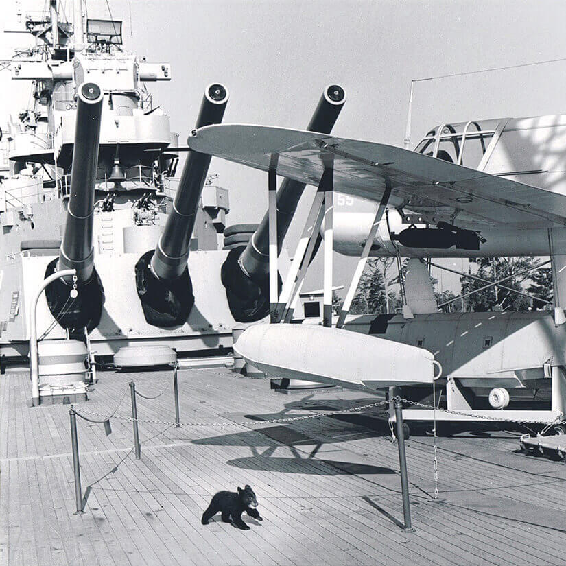 The deck of the USS North Carolina in Wilmington provided good footing for Hobo.<br><span class="photographer">photograph by Grandfather Mountain Stewardship Foundation</span>