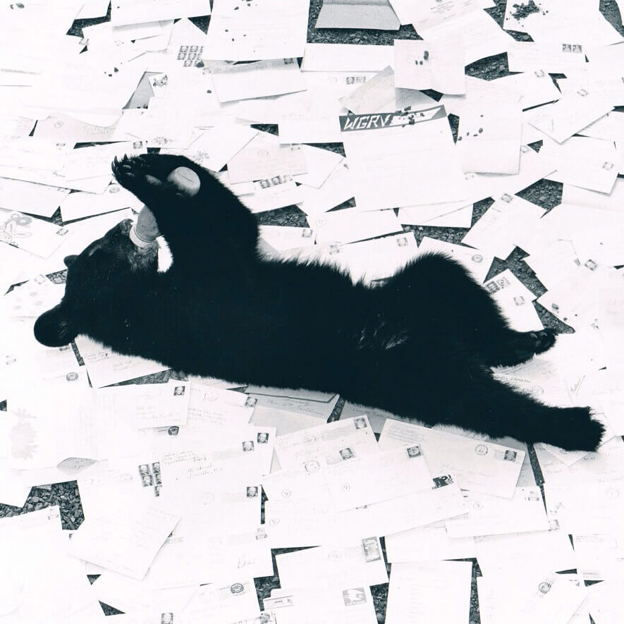 Hobo on a bed of letters from folks entering a contest to name him.<br><span class="photographer">photograph by Grandfather Mountain Stewardship Foundation</span>