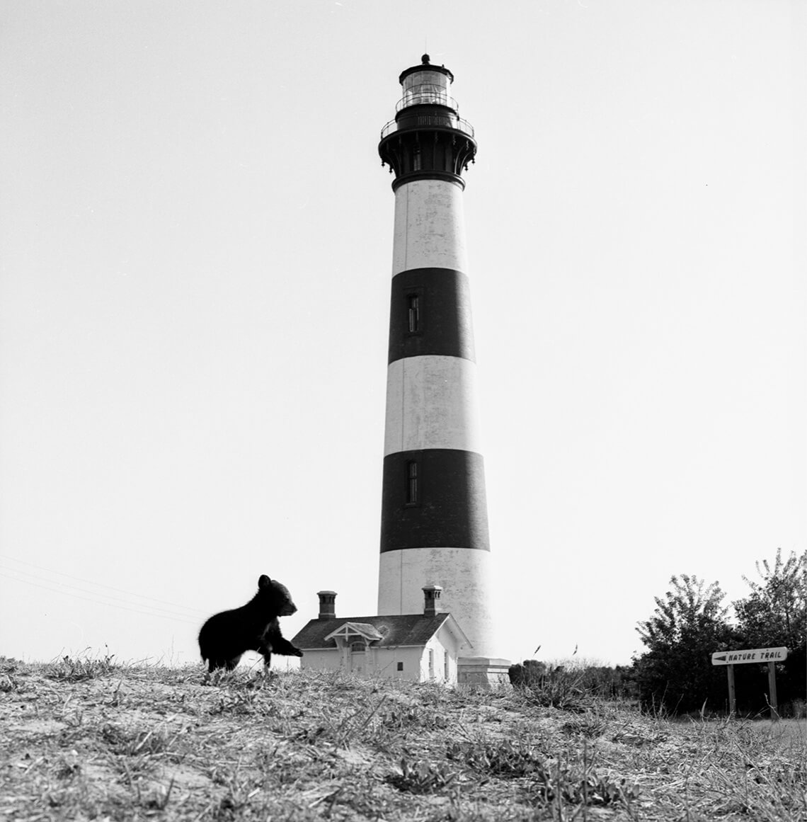 Folks, look at this cute. Little. Bear cub. There he is in Asheville at the Biltmore Estate! Ooh, that’s him at the Old Well in Chapel Hill! Say, is that a lighthouse behind him? Yup!