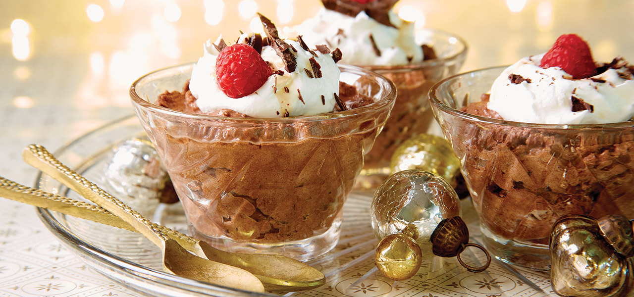 Serve with whipped cream topping and garnish with chocolate shavings, fresh raspberries, and a tablespoon of Chambord over each serving.